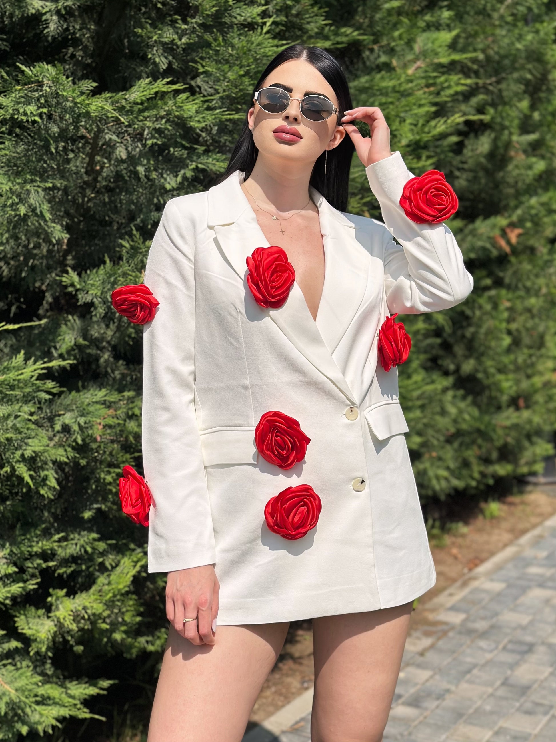 Sacou roses alb